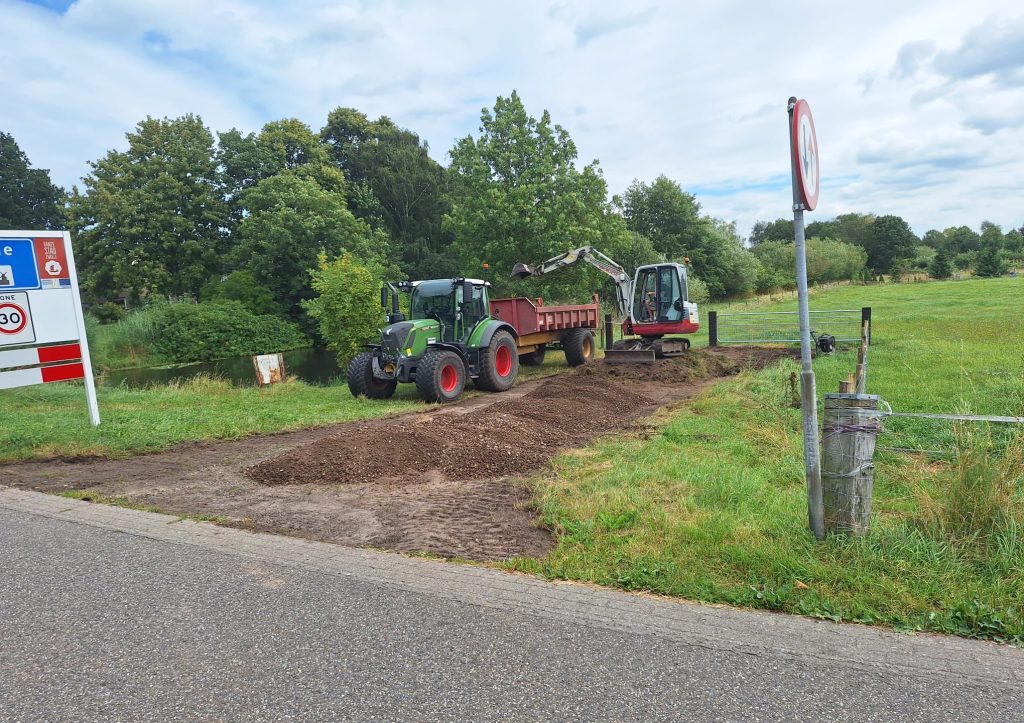 Wij zijn ontzettend blij met deze nieuwe locatie. Er wordt op dit moment hard gewerkt aan de voorbereidingen. Zo wordt er o.a. gewerkt aan een nieuw hek, een goede afvoer (voor wanneer het minder weer is) en een nieuwe poort. Het wordt goed toegankelijk gemaakt d.m.v. kiezels op het toegangspad. Dit pad wordt gebruikt voor de aanvoer van de materialen en horeca benodigdheden.